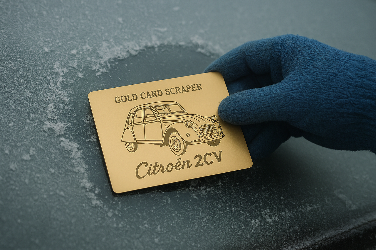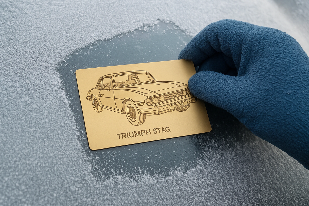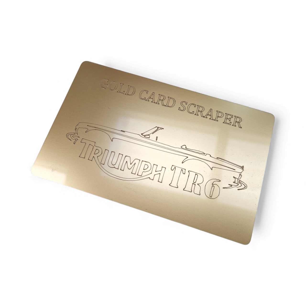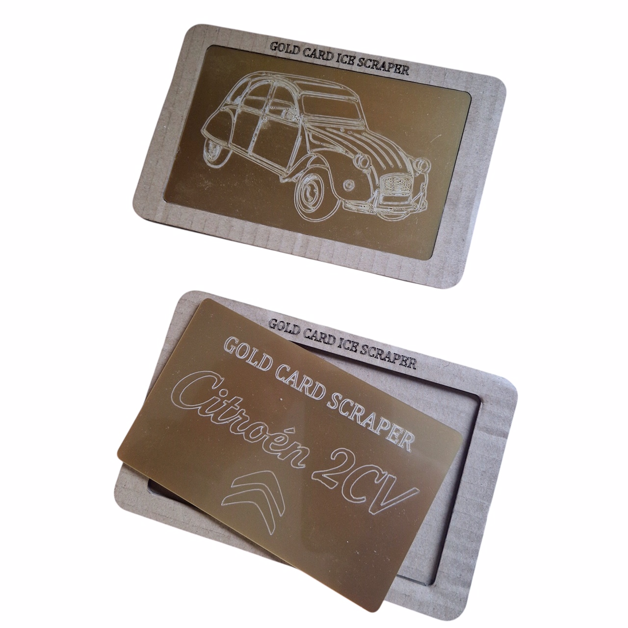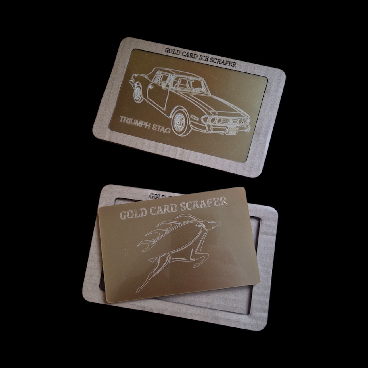 this Gold card ice scraper is a great accessory to have in your glove compartment for those cold and frosty mornings, laser engraved with your classic car image.